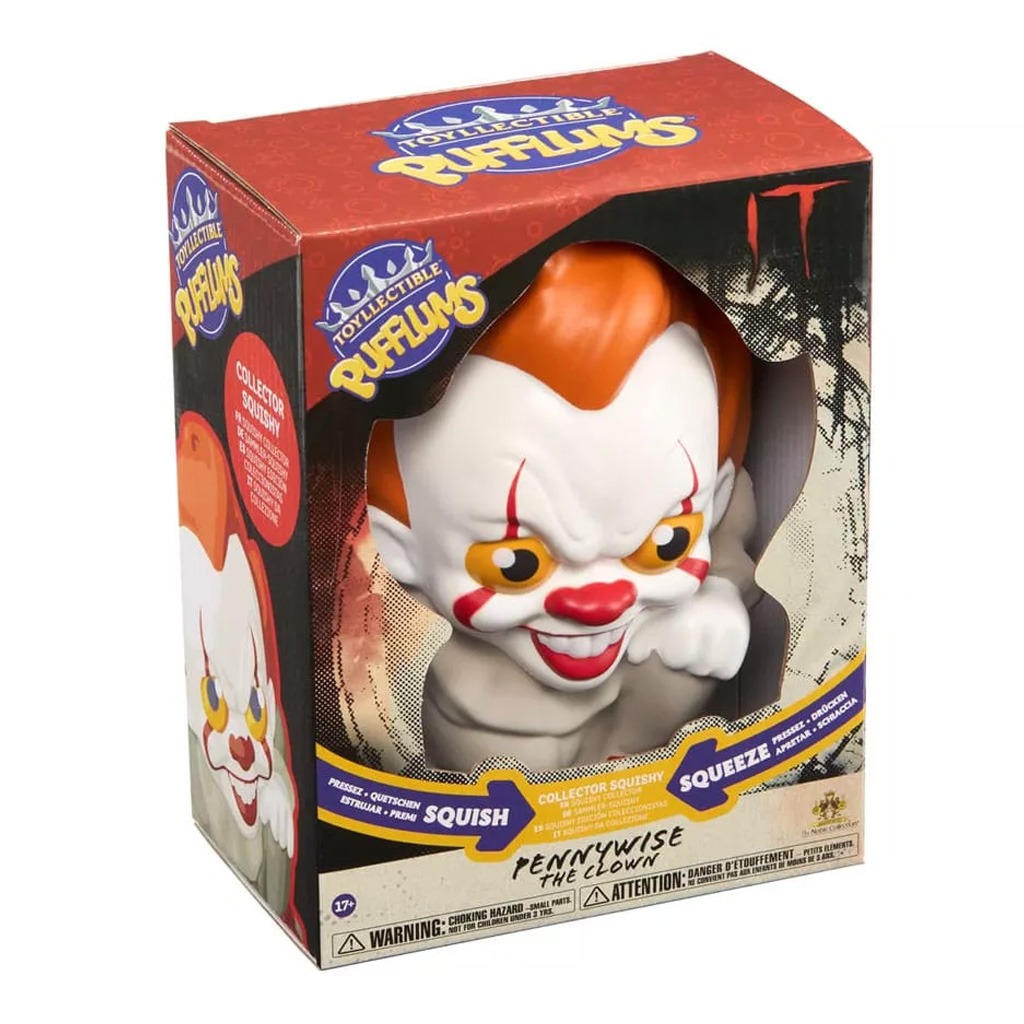 IT" is recreated as an unsettlingly adorable squishy Pennywise the Clown form. Pennywise measures approximately 7" (18cm) tall and comes in branded packaging.